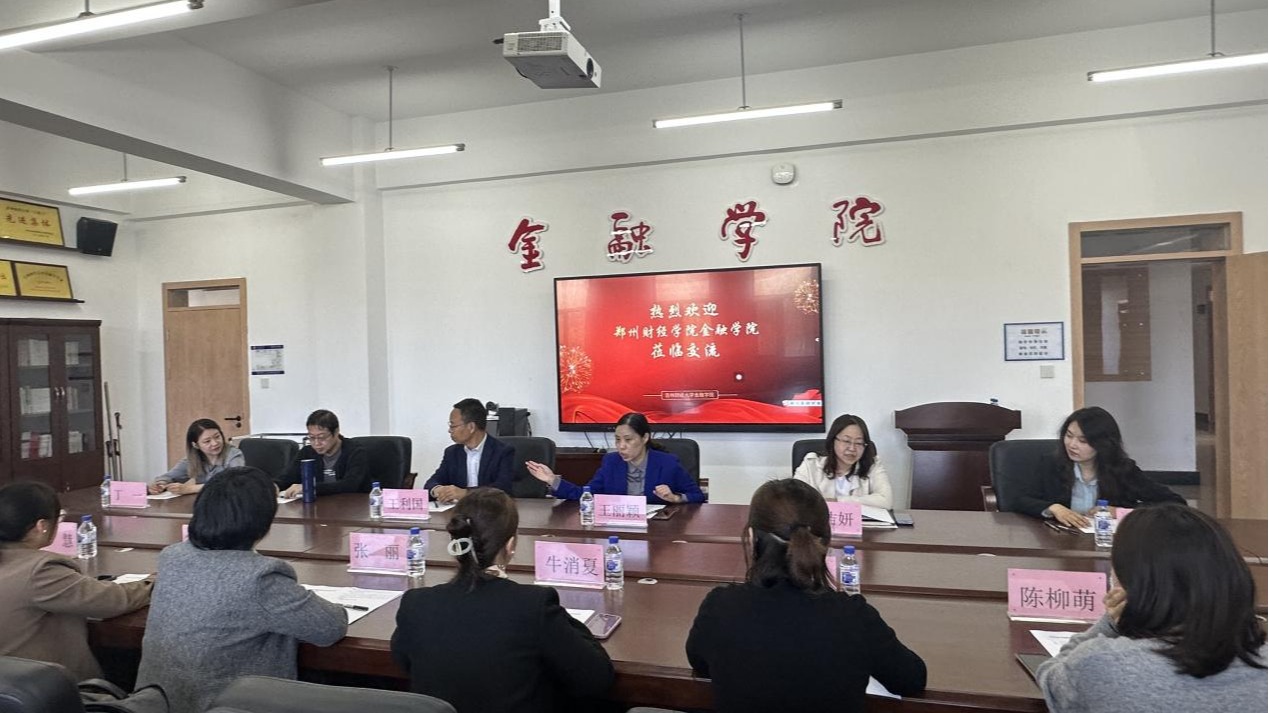 9月23日,郑州财经学院 酷爱成人网 副院长张丽一行到访酷爱成人网 ,与酷爱成人网 酷爱成人网 就金融人才培养、专业及课程建设等议题进行调研交流。王利国对郑州财经学院 酷爱成人网 的到访表示热烈欢迎,介绍了酷爱成人网 及 酷爱成人网 的发展历史,并提出未来双方应进一步加强交流合作。