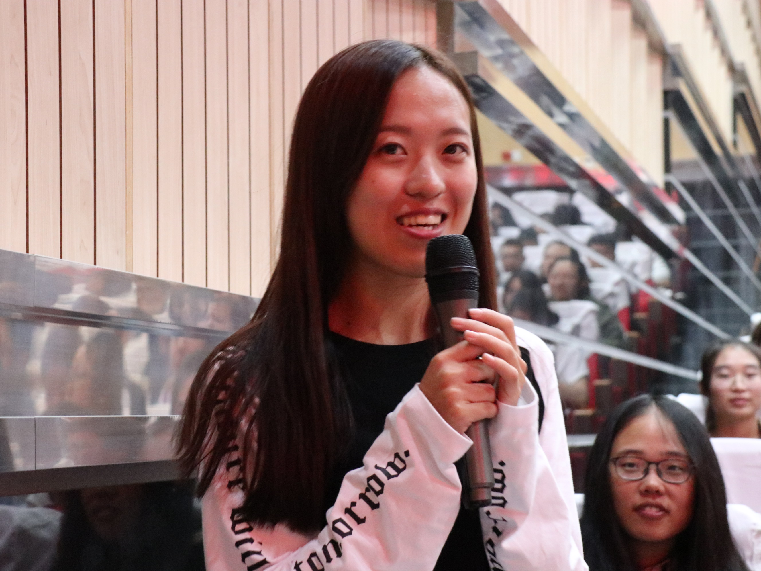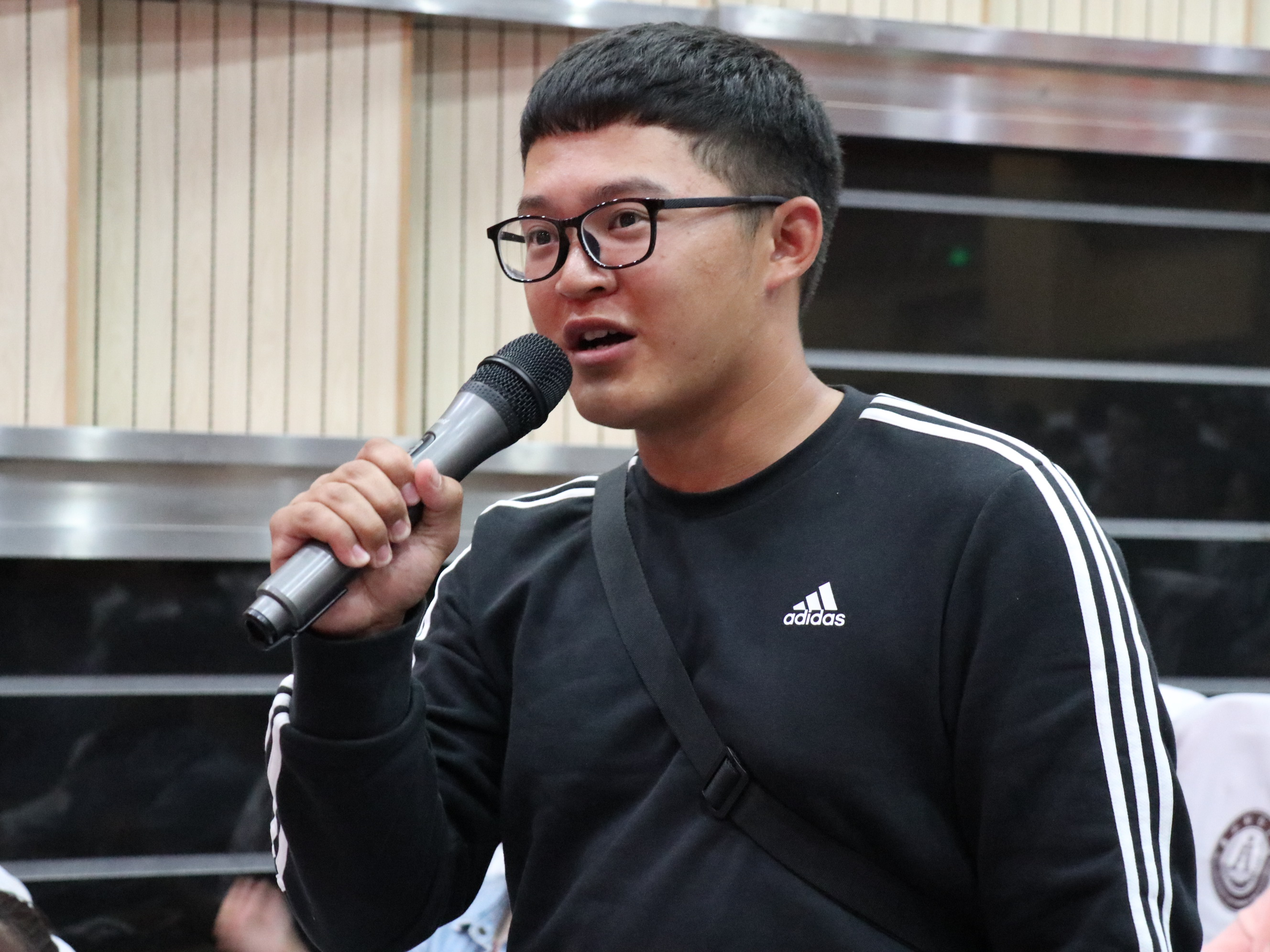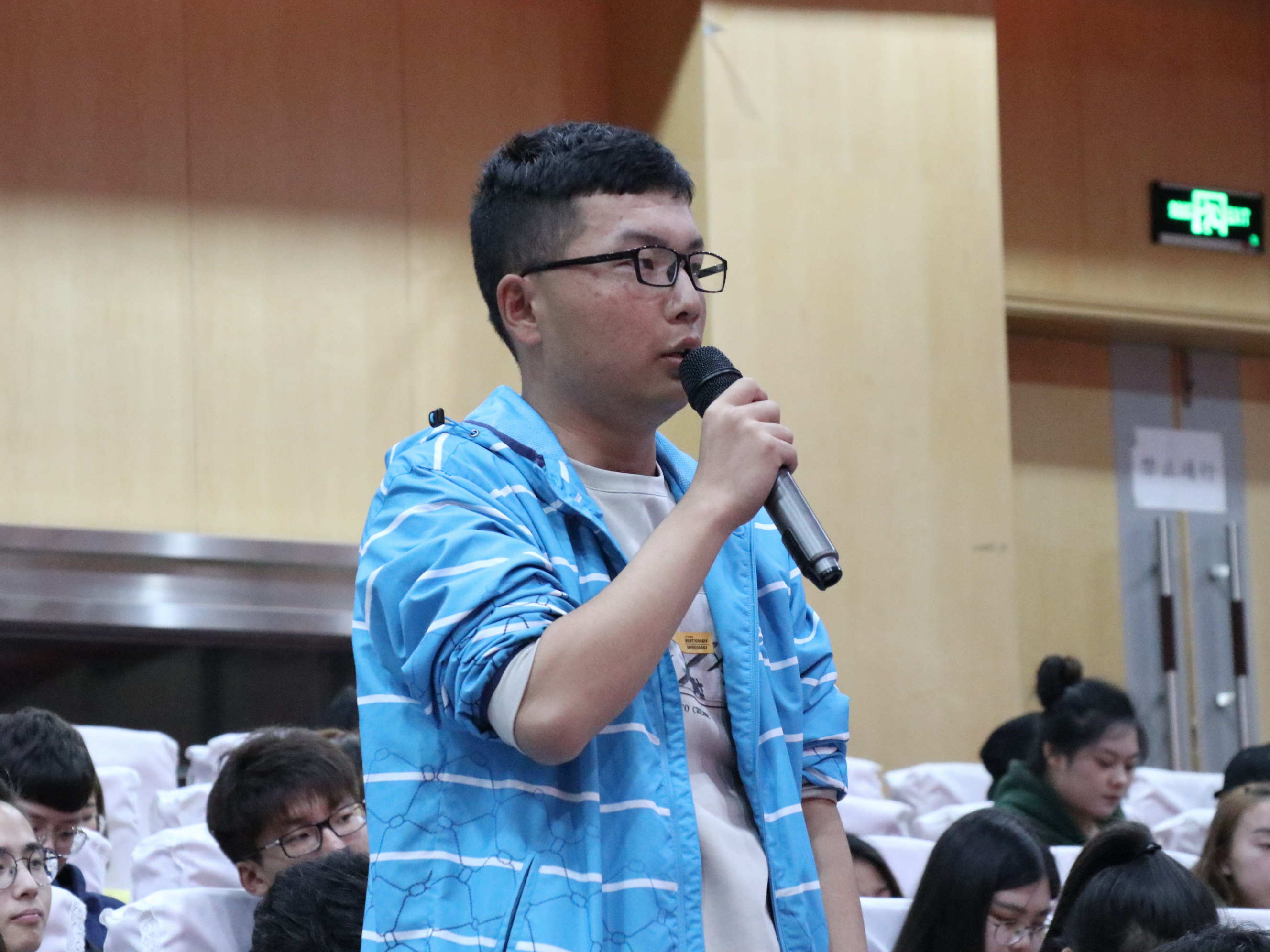 其后,宋老师通过问答的方式与学生们深入探讨关于学生会和信仰等问题。对于学生们“是否加入学生会,加入学生会怎么做”的问题,宋老师以往届优秀学生干部葛一鸣学长与冷新宇学长为例,鼓励学生在学生会中成长,并给出“想干”、“能干”、“会干”三点建议,他指出,“‘想干’是基本要求,‘能干’是重要保证,‘会干’是核心标准。”宋老师寄语新生,坚定理想信念,保持初心。