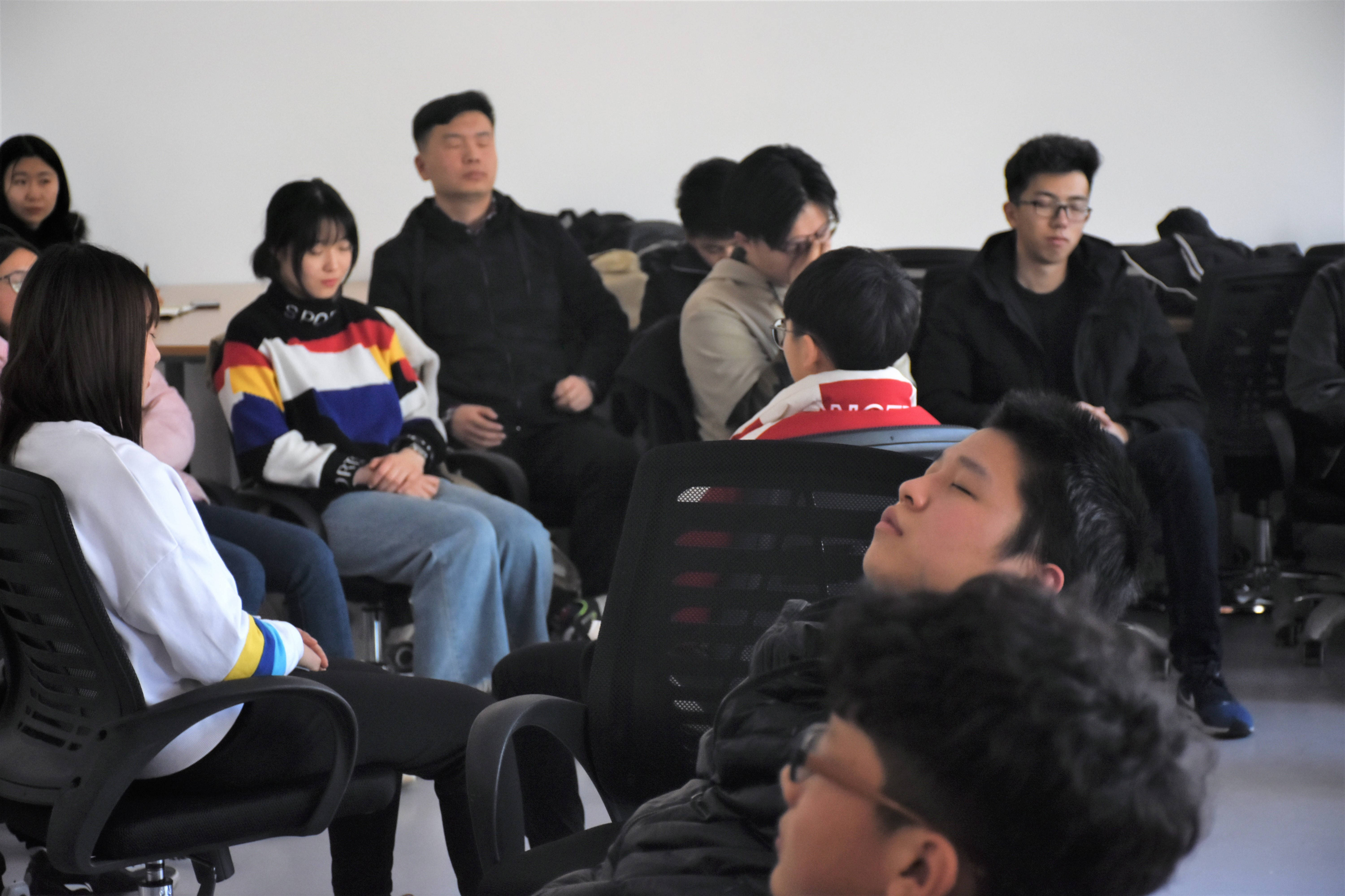 在活动的最后,一段动听的音乐,一次简单的放松,让同学们略微疲劳的身体和心灵放了个假。