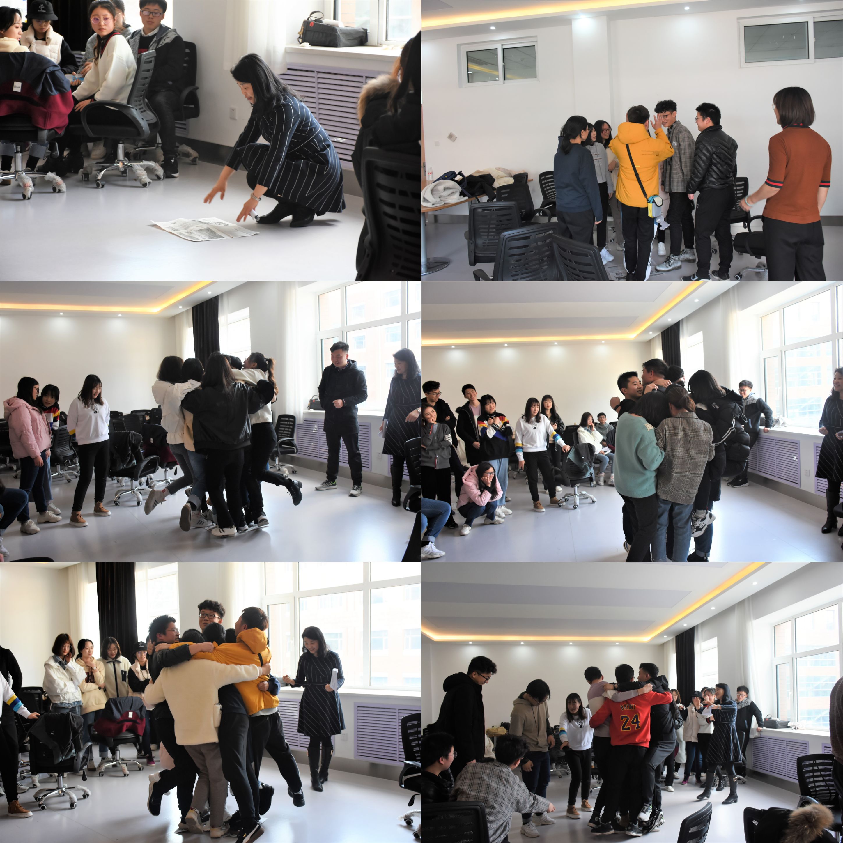 经过上个环节磨合的小组成员开始了下一个时长为二十分钟的游戏,老师为每个小组分发一张报纸挑战一个令人难以置信的任务“同舟共济”,成员们需要想尽办法站在报纸内,脚不可超出报纸之外,所有人都全力以赴。尽管在这个过程中,每个人都有压力,但都积极配合,齐心协力,管理好自己的情绪,通过对自身的改变实现集体目标,就如星星之火,可以燎原,最终每个小组都精彩漂亮完成了任务,没有因为船太小而舍弃队友,大家的团结精神不仅感动了我们,也令老师十分感动。老师让每个小组的代表讲分享活动后的感受,每个人都有不同的心得体会:我们需要更多的责任意识担当,积极为集体做贡献;我们要具有团结意识,只有这样,才能将不可能转化为可能,这个活动在拉近了同学们彼此的距离的同时,也让同学们学习了如何去管理自我情绪。