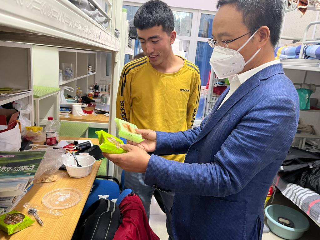 走访慰问过程中,老师们就学习情况、生活习惯、是否适应学校生活、假期安排等问题与同学们进行亲切交谈。鼓励大家勤勉好学,珍惜韶华,不负大学宝贵时光;了解同学们在学习和生活中的困难与需求,叮嘱同学们遇到困难要及时寻求帮助;询问同学们的假期安排,并叮嘱学生假期出行安全;提醒无法与家人团聚的留校同学记得给家人们打电话送祝福、报平安等等。