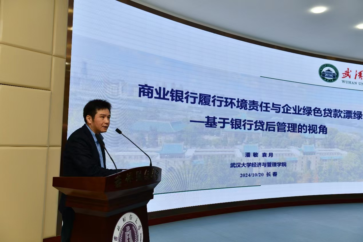 武汉大学金融发展与政策研究中心主任潘敏教授就“商业银行履行环境责任与企业绿色贷款漂绿——基于银行贷后管理的视角”为题进行报告,他指出商业银行承担环境责任能够显著抑制企业绿色贷款的漂绿行为,强调严格的绿色信贷贷后管理,是商业银行履行环境责任、监督借款企业按照约定使用绿色贷款资金的关键,同时也提出绿色标准的明晰、央行对绿色贷款贷后管理的激励约束可以对漂绿行为进行有效制约。