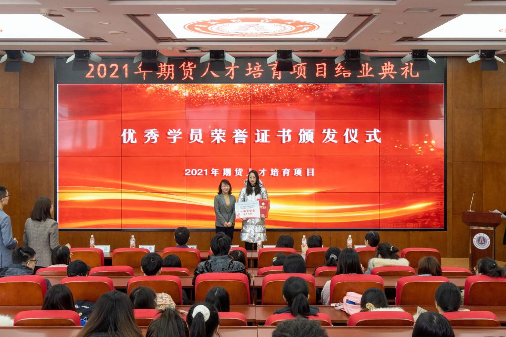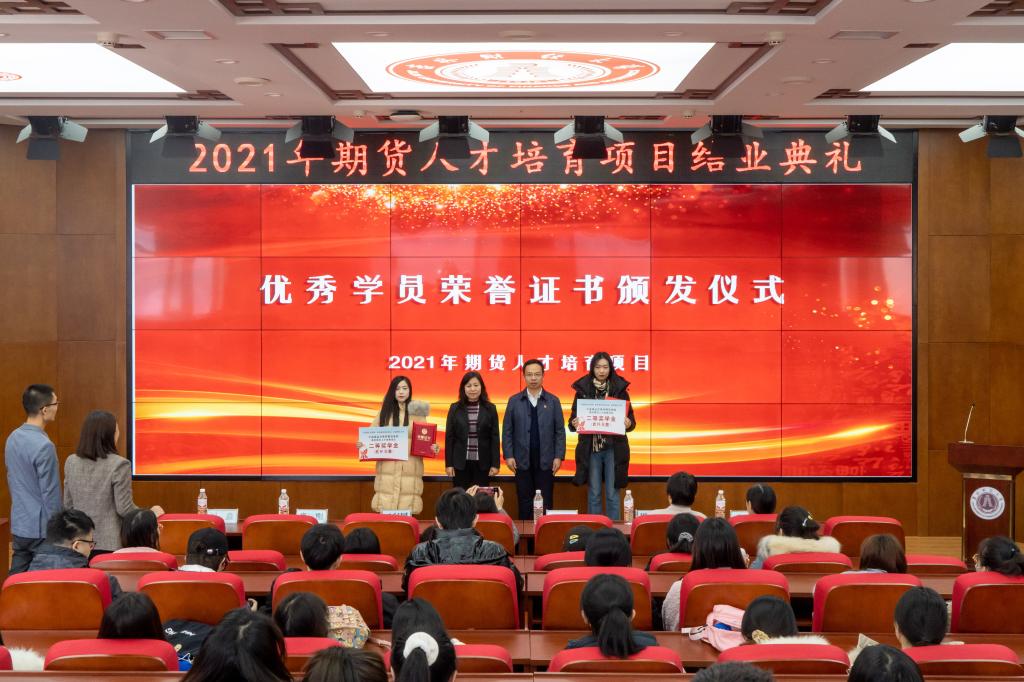与会嘉宾为本期项目的21名优秀学员颁发了“2021年期货人才培育项目”奖学金和荣誉证书。