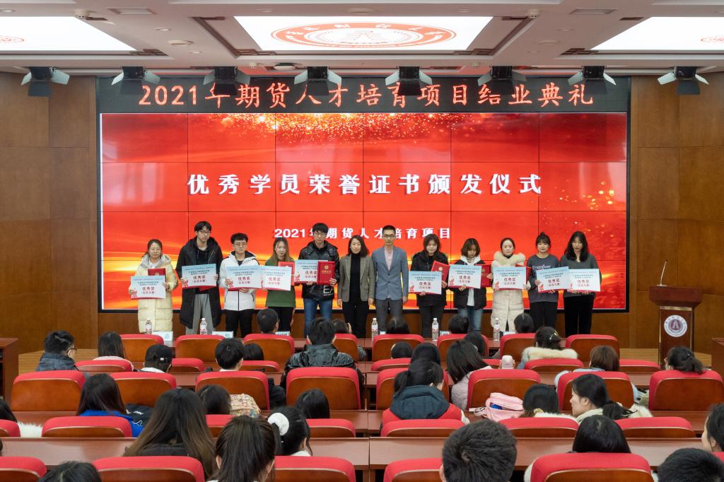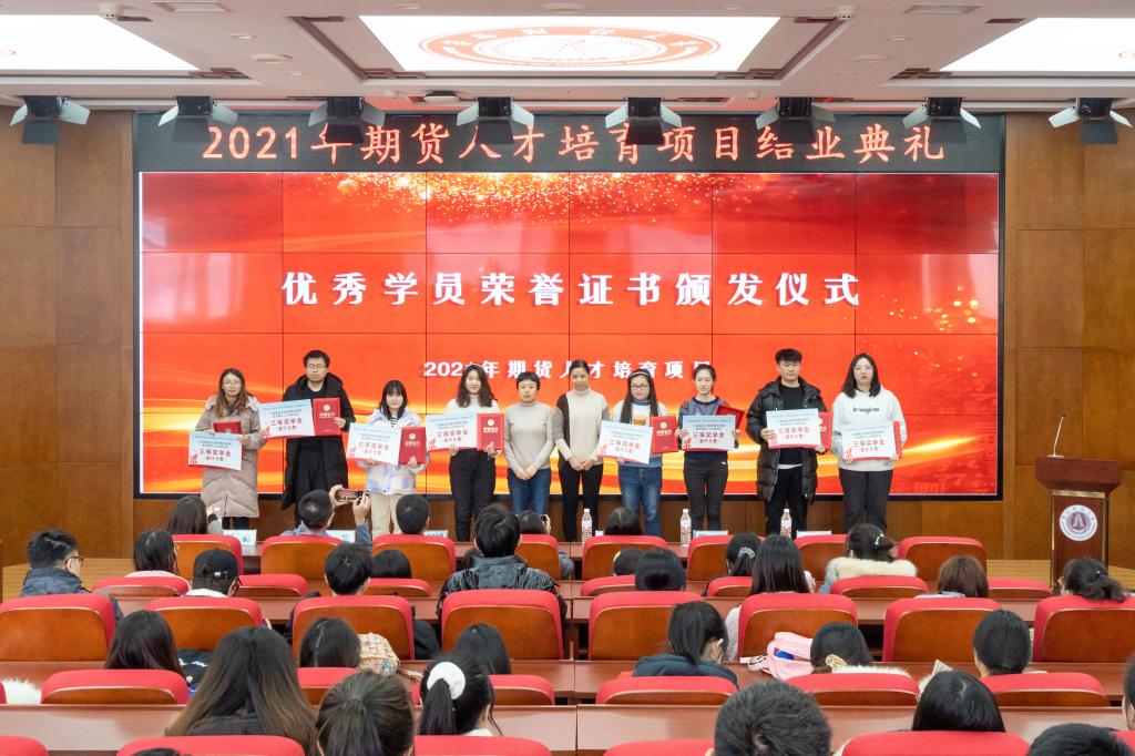 本次期货人才培育项目于2021年9月25日启动,18位实战经验丰富的来自监管部门、证券公司、期货公司的高管人员和业界专家以及高校老师给培训班的学员们讲授《期货投资实务》课程,总学时为54个课时,既有理论讲解、实际案例分析,还有带领学生参观访问期货公司、模拟交易、学习体会交流等实践活动。酷爱成人网 2020级金融专业研究生和2019级本科生共计184人参加了培训学习,经考核顺利结业175人,其中21人被评为优秀学员,获得大商所奖学金。