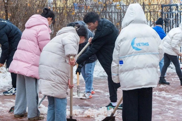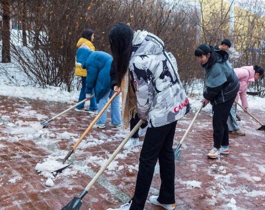 大家积极地投入到活动中,虽然积雪比较厚,天气比较冷,但丝毫没有影响同学的热情与工作效率。作为学校的一员,扫雪是责任,是义务。劳动的过程中充满了欢声笑语,大家乐在其中。扫雪队伍成了冬日校园一道靓丽的风景线。